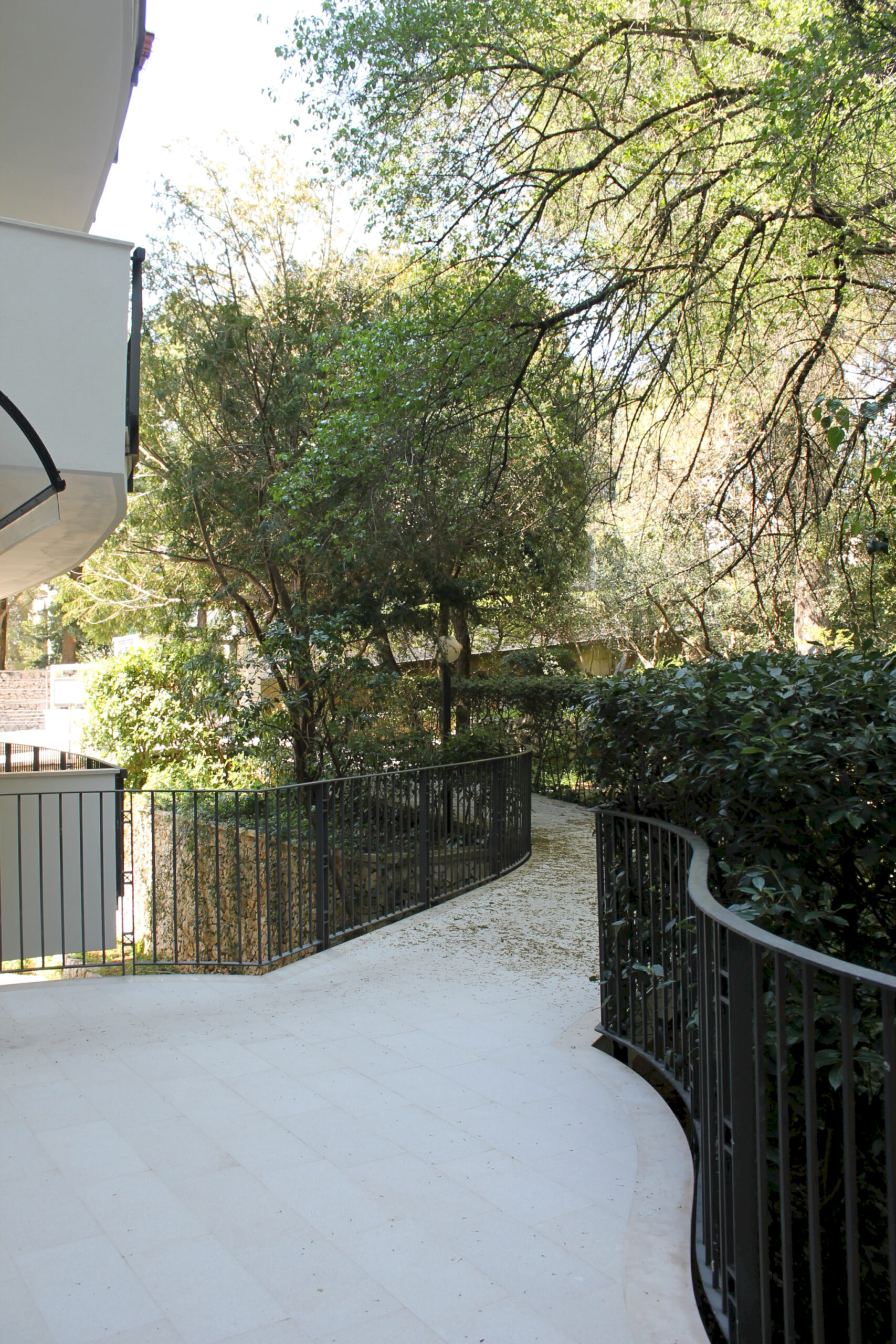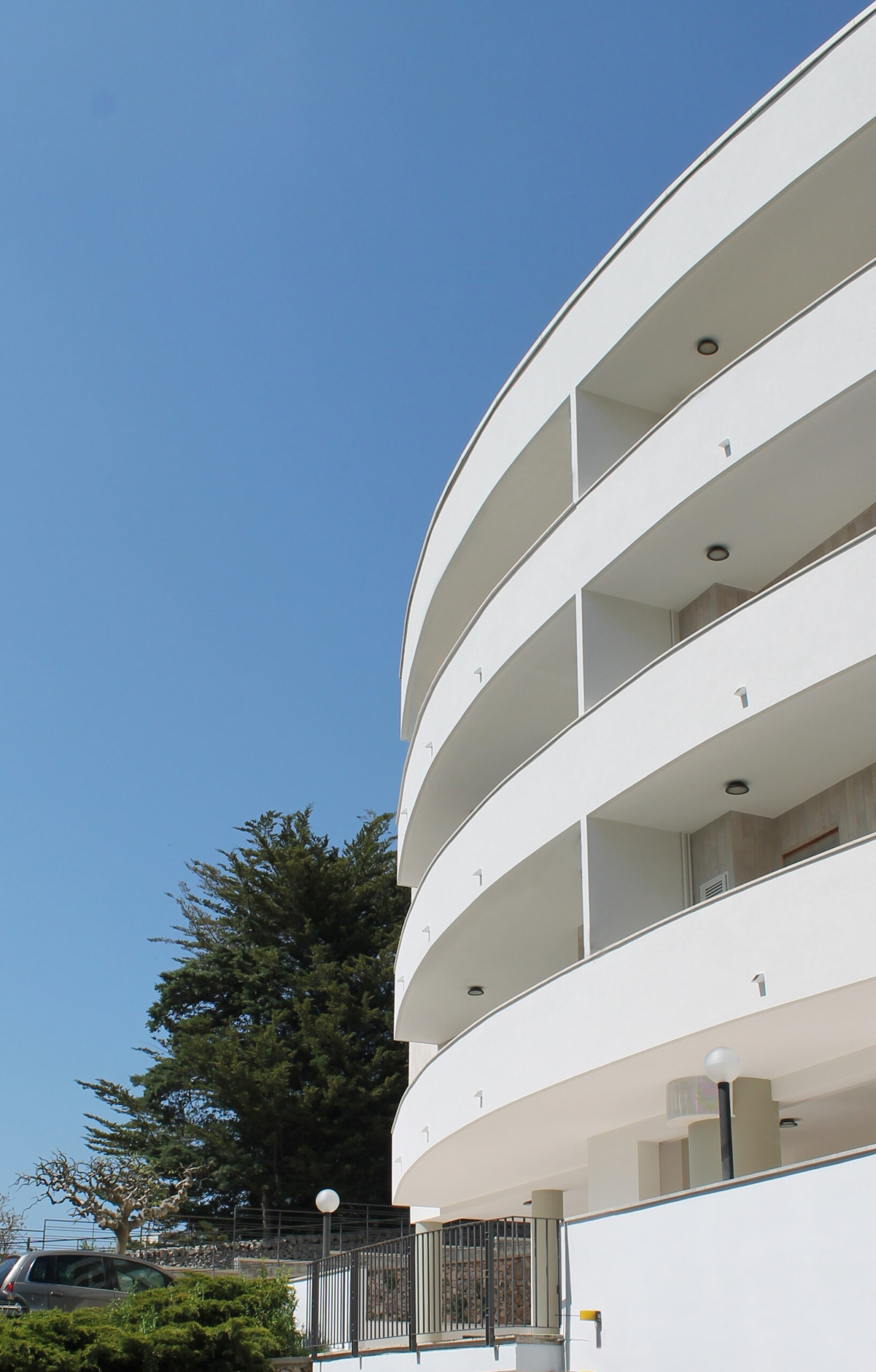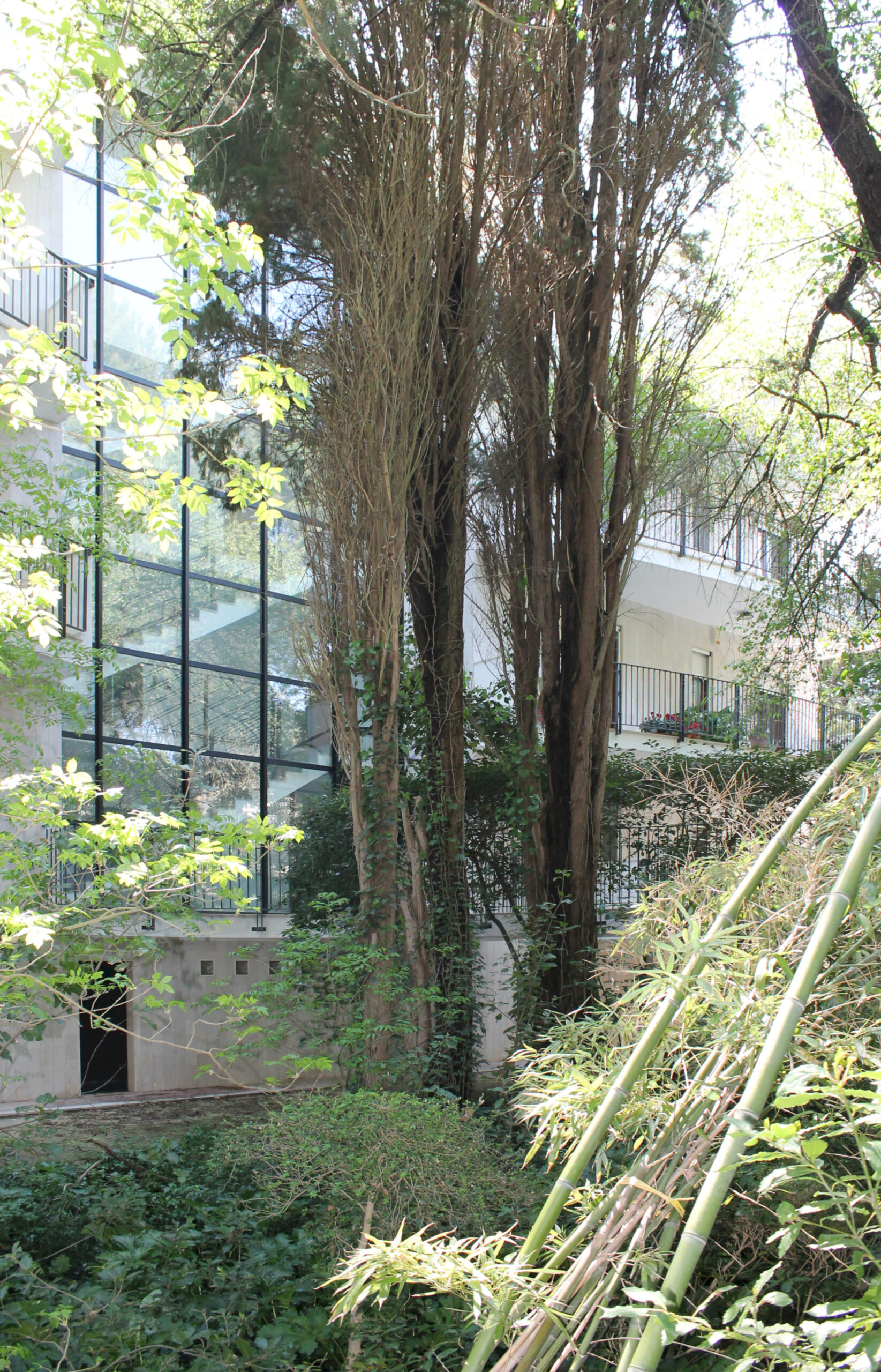 Morfologicamente l’area è molto accidentata e la sua parte posta a monte è interessata da un orto botanico esistente che è stato totalmente preservato. La presenza di innumerevoli essenze arbustive, di alberi di conifere di alto fusto e il particolare assetto morfologico hanno fortemente condizionato e ispirato il progetto architettonico. L’accesso pedonale all’edificio avviene attraverso un suggestivo percorso pavimentato in pietra calcarea locale.